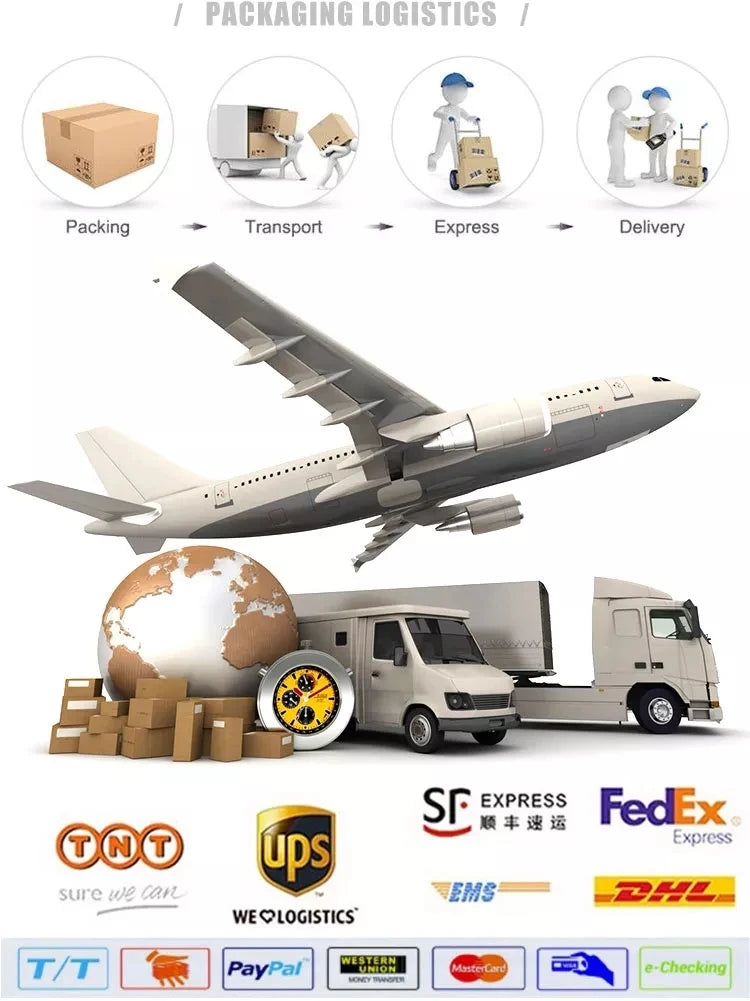3)he goods shall be delivered within 7 days after the order is placed and the goods shall be delivered to the place designated by you within 15-20 days 4)Express:UPS DHL FedEx TNT and Alibaba logistics style,We could also ship goods by air or sea.