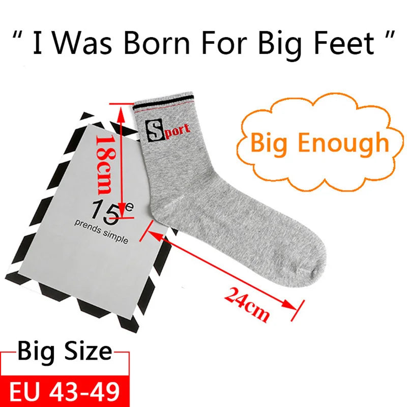 3 Pairs/Pack Big Enough Socks EU47,48,49 Sports Mid Socks Men's Plus Size Combed Cotton Compression Socks Meias Calcetines Male