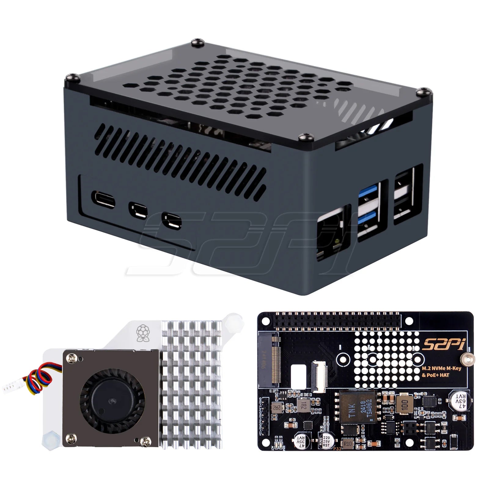 52Pi M.2 NVME M-key & PoE+ Hat & Active Cooler Kit For Raspberry Pi 5 Support SSD: 2230/2242/2260/2280
