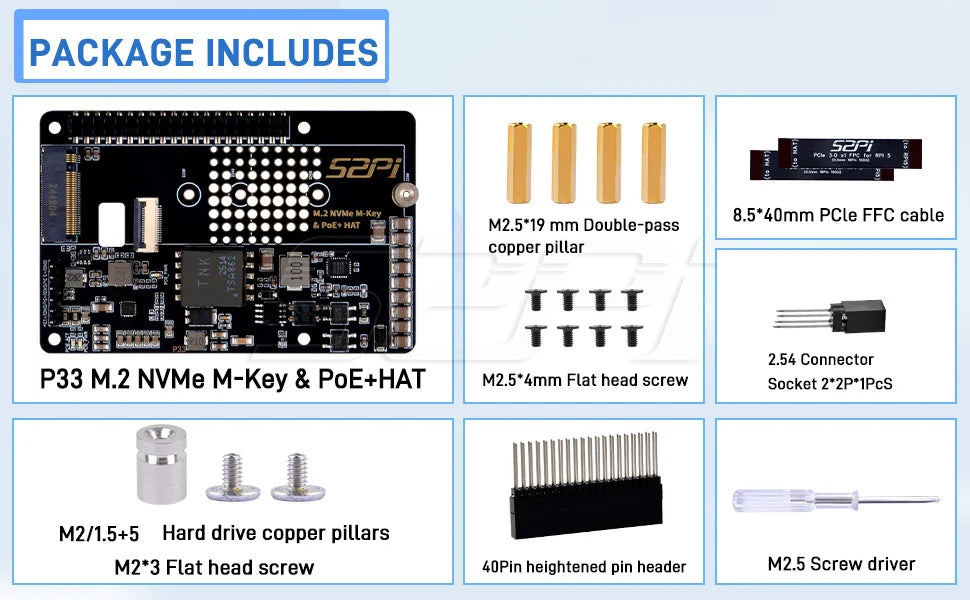 The M.2 NVME M-key & PoE+ Hat for Raspberry Pi 5 is an innovative accessory that significantly expands the capabilities of the Raspberry Pi 5. Designed with versatility in mind, this PoE+ (Power over Ethernet) Hat allows for a streamlined setup by enabling the Raspberry Pi to draw power directly from an Ethernet port through the use of a PoE switch or PoE power supply. This eliminates the need for a separate power supply and simplifies the overall system architecture.
