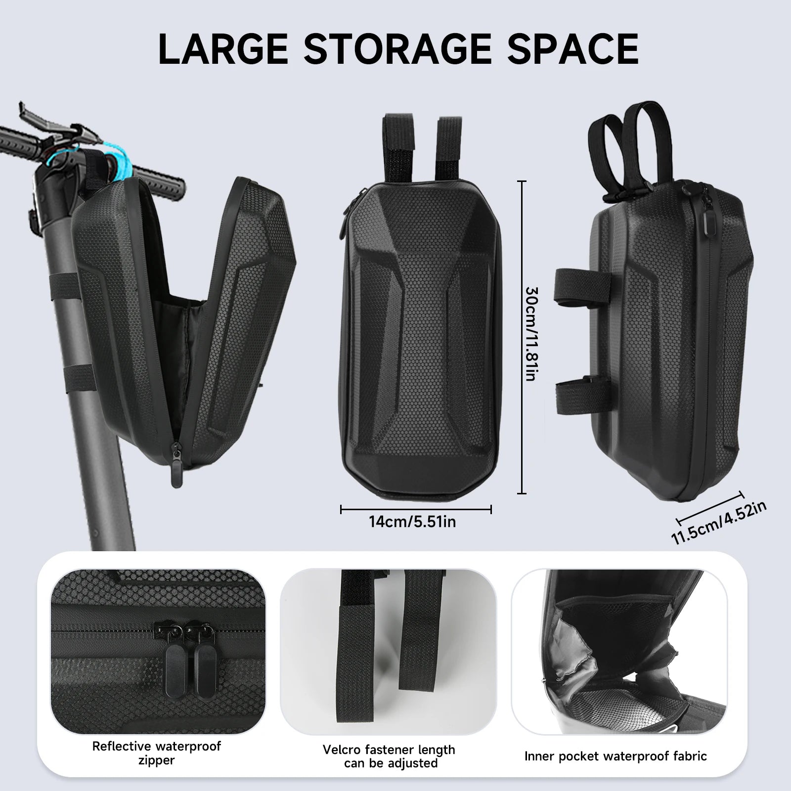 Electric scooter bag handlebar bag: we provide you with an electric scooter bag with a capacity of 3l.Made of waterproof pu material, the lock can be placed in the scooter bag and hung on your transporter.The hanging bag adopts hard shell design, scratch-resistant and wear-resistant keyhole, inner mesh pocket, and large pocket capacity.It can not only store handcuffs locks, but also carry some daily needs.