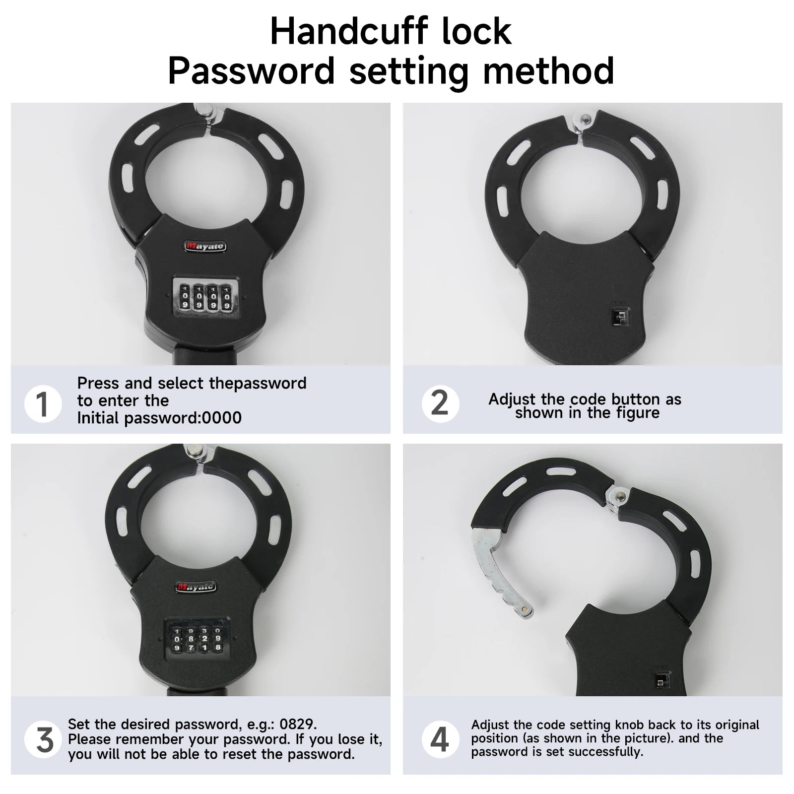 Password setting: the scooter lock uses a four-digit password, and instructions are included in the package.Four-digit password, easy to remember, safe and reliable.Factory password 0000, you can open the password you want.After setting the password, turn the button back to its original position.The password is set success and it can be opened.With a keyless comfort lock, you never have to worry about losing your keys or forgetting to carry them.