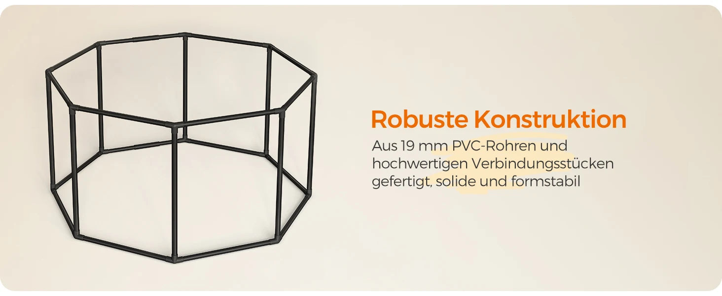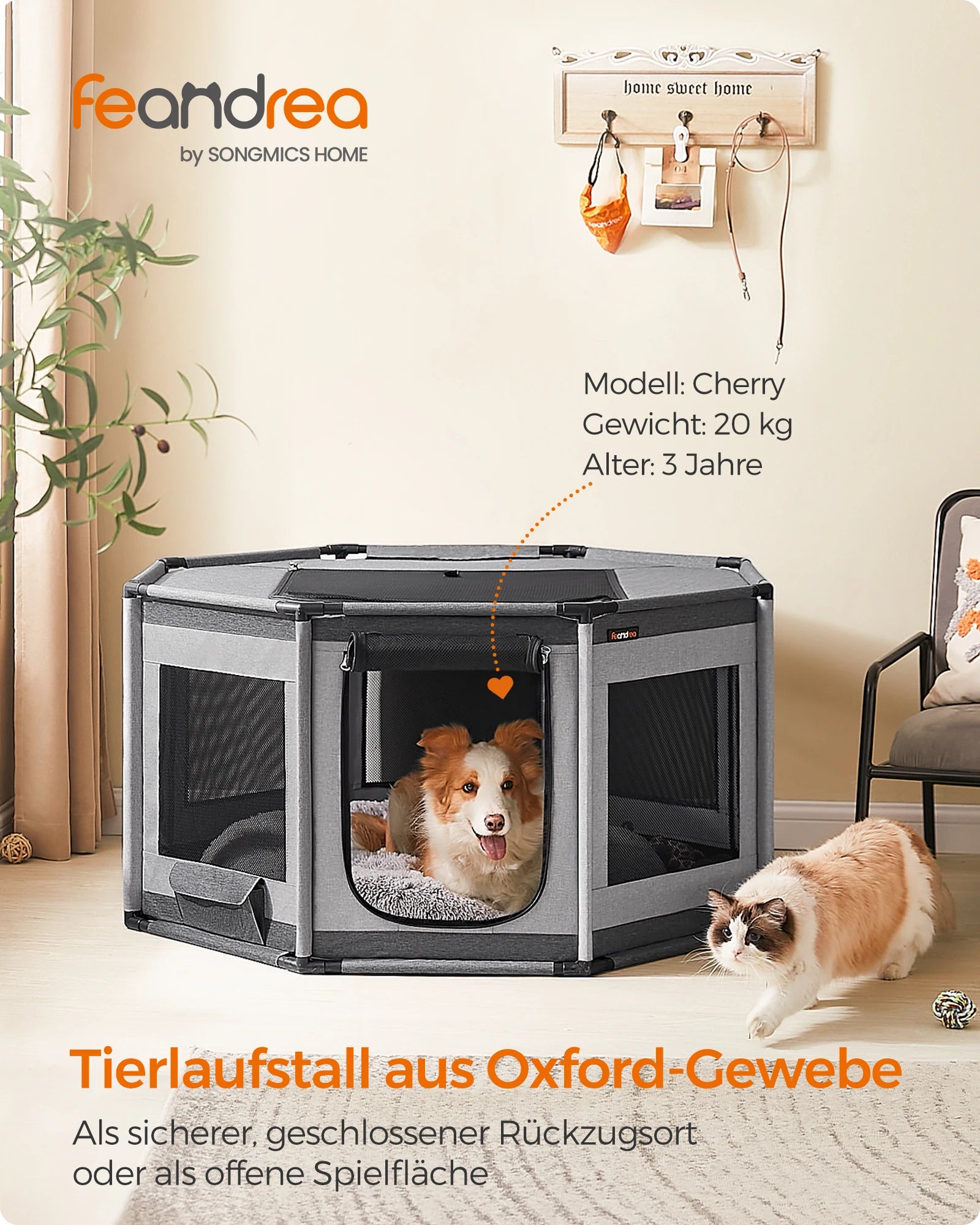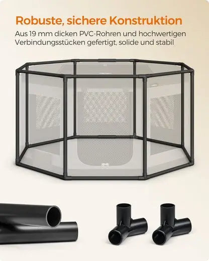 [Robust, safe construction] The puppy spout is supported by a strong frame of PVC pipes, is stable and resistant to deformation[Durable] The side walls of the puppy playpen are made of 400D Oxford fabric and tight-meshed hard-wearing mesh that can also withstand claws and dogs teeth