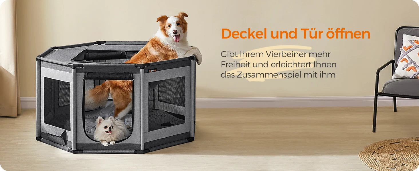 Upper opening, side door with zipper, additional side bag for storage space. as living space, open playground, for puppy birth or recovery after surgery
