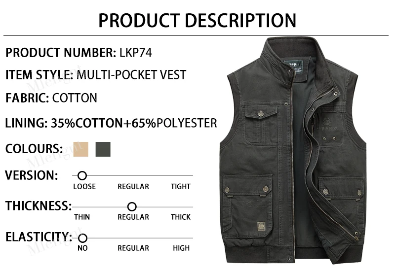 Men Multi Pockets Cotton Vests Big Size XL-5XL Male Sleeveless Jackets Spring Autumn Fishing Vests Photography Collar Waistcoats