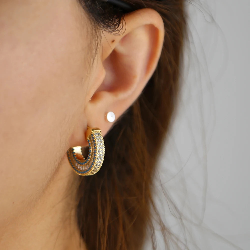 Promotion Rectangle Cubic Zirconia Turquoise Stone Luxury European Women Geometric Cz Hoop Earring