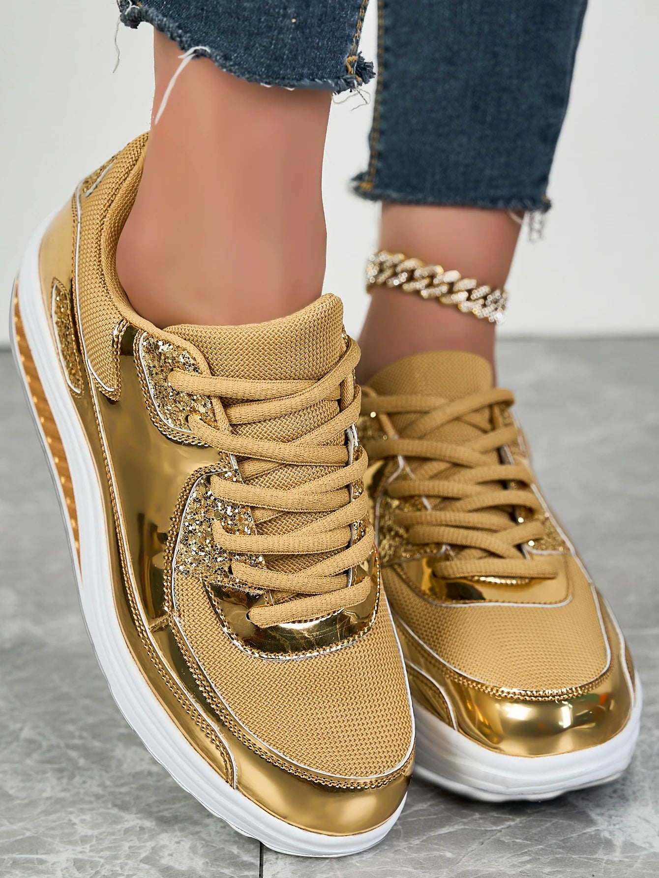 Women's flat mesh sports shoes spring and autumn new lace-up breathable comfortable fashion fitness women's shoes