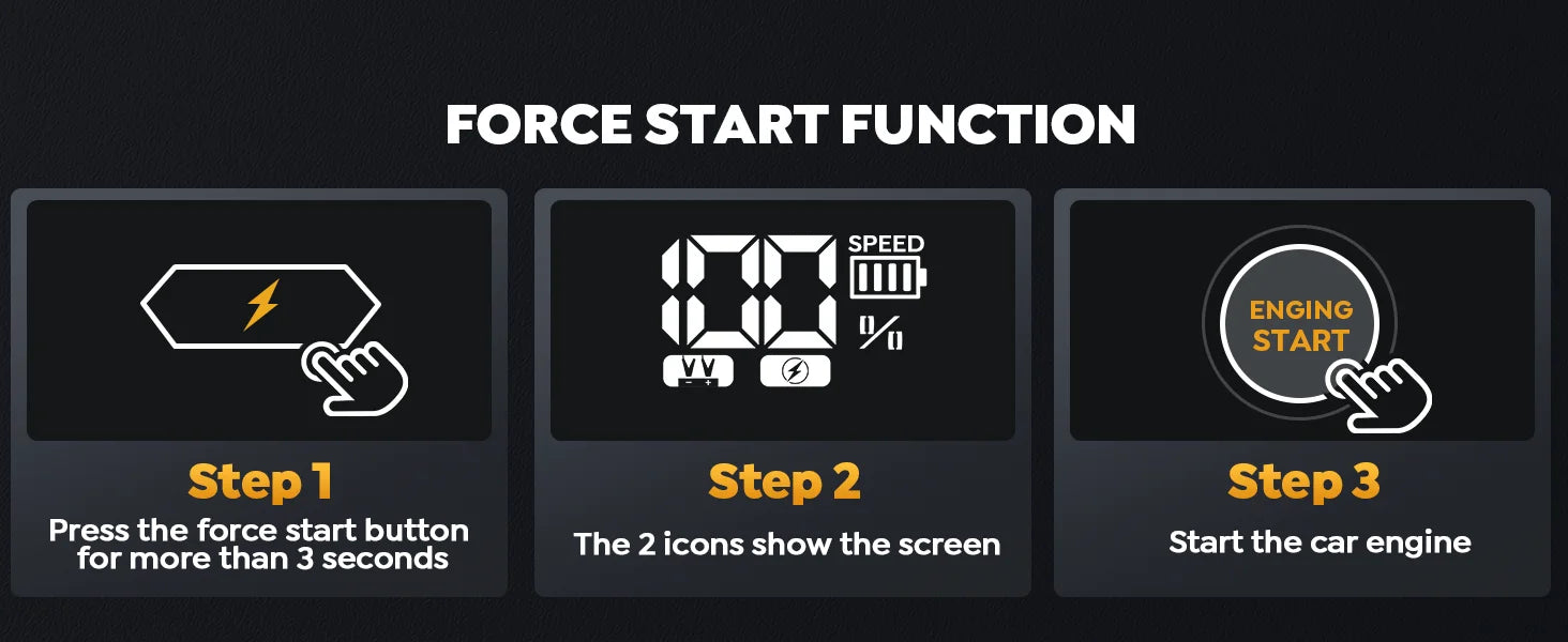 The force start button can instantly start your completely dead or low-voltage car batteries.