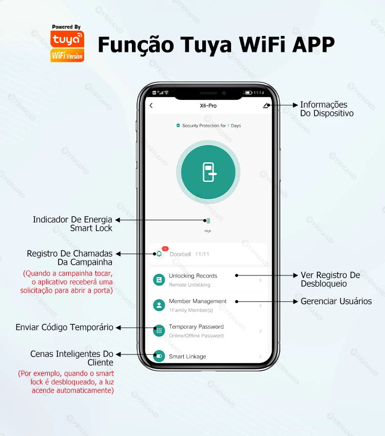YRHAND Do Brasil Tuya wifi App Unlock fechadura digital Waterpoof eletronica Fingerprint IC card Smart Door Lock for Home