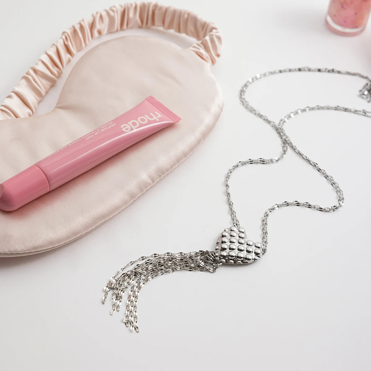 Zora Minimalist Style Silver-Plate Stainless Steel Heart Pendant Splicing Tassels Necklace Waterproof Women's Unique Jewelry