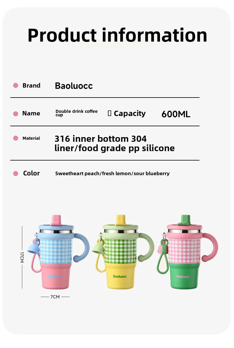 Tasse isotherme double en acier inoxydable 316 pour bureau, idéale pour les filles (2025). Poignée pratique, paille et double capacité.