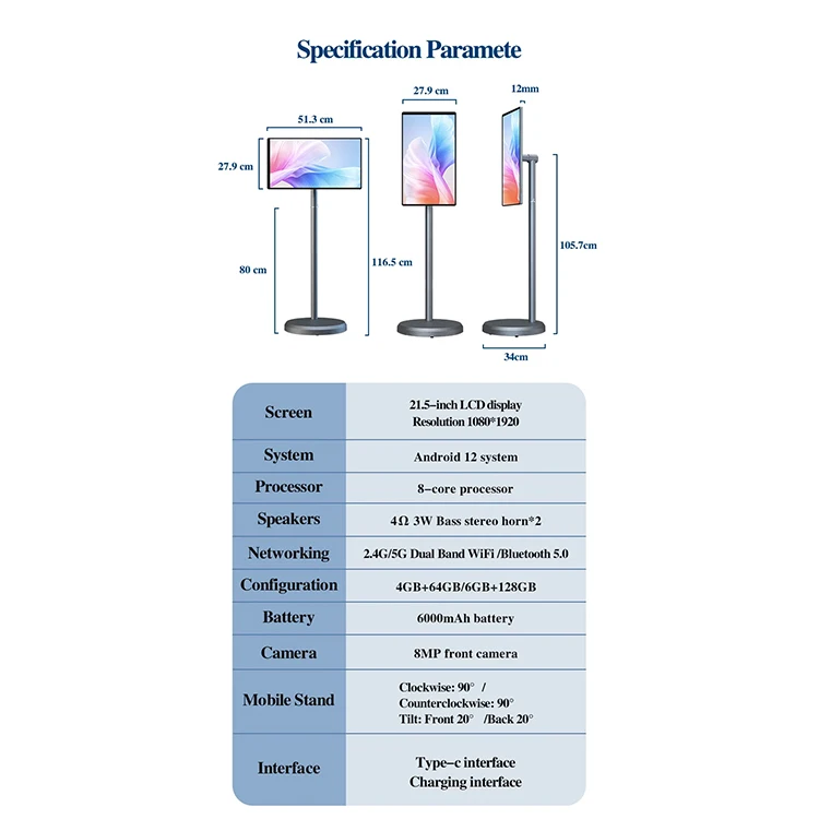 Nouvelle tendance 2025 : Écran TV intelligent 21,5 pouces, moniteur LCD mobile 21,5 pouces, téléviseur intelligent sur roulettes, téléviseur portable