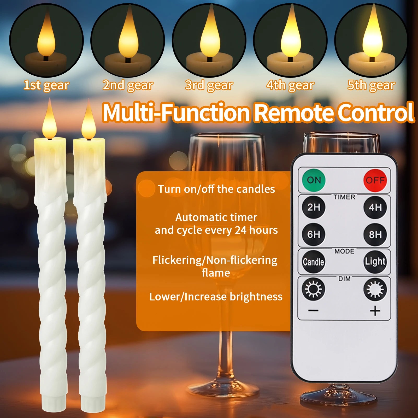 CONTRÔLE INTELLIGENT : En plus de créer une ambiance chaleureuse, vous pouvez aussi contrôler vos bougies intelligemment. Une télécommande à 10 touches est fournie avec chaque bougie. Vous pouvez programmer leur allumage sur 2, 4, 6 ou 8 heures, régler leur luminosité et modifier le mode de scintillement.