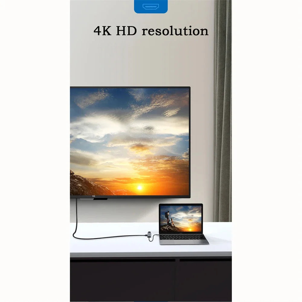 8 in 1 USB-C HUB 4K/30HZ: 1*HDMI+2*USB 3.0+1*PD+1*USB C+1*SD+1*TF+1*RJ45