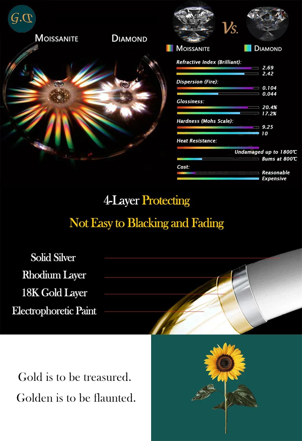 • Pierre principale : Diamant Moissanite 100 % véritable (conforme au test du diamant)
