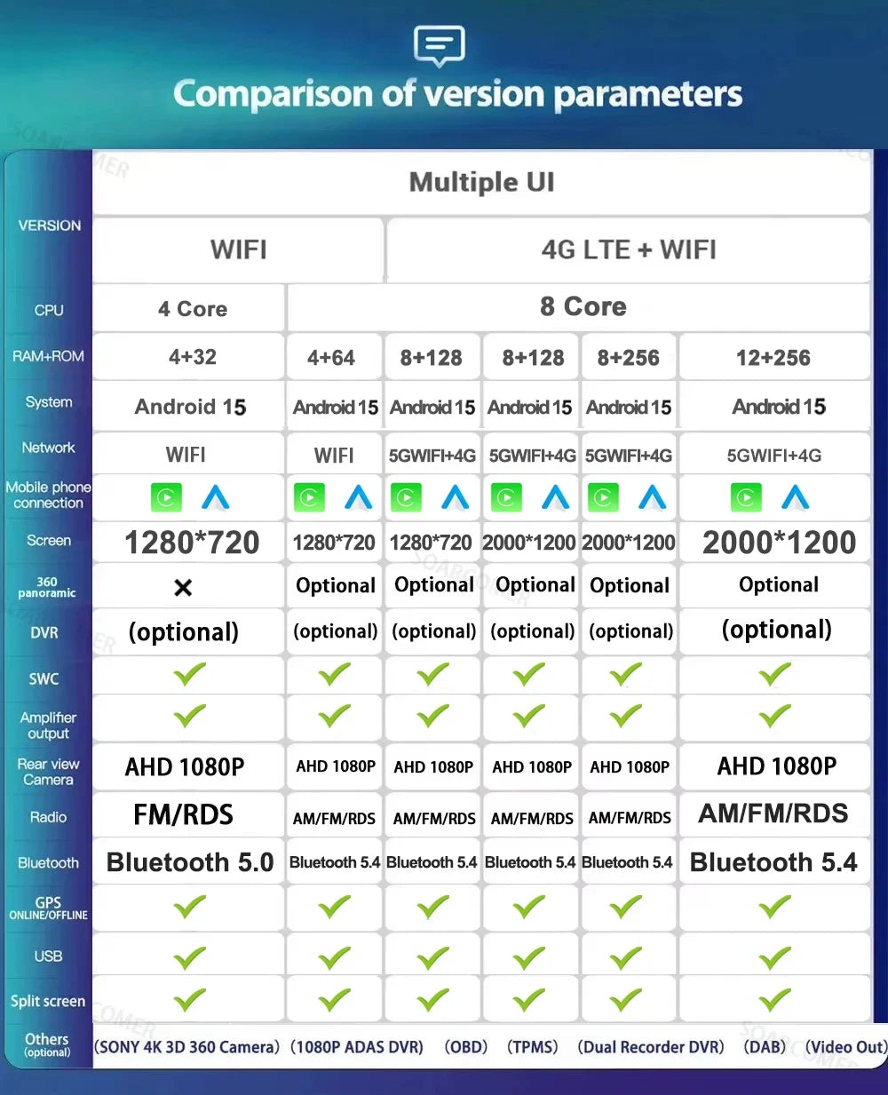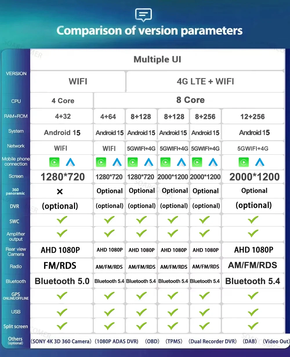 Include Accessories: USB*2, RCA, GPS, Camera Input Cable, 4G Cable (Only 4G Model)
