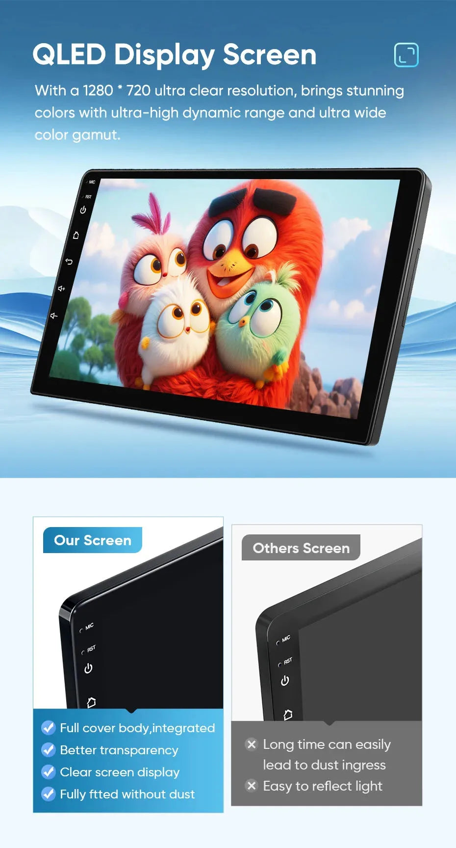 Resolution: QLED 2000*1200 / 1280*720