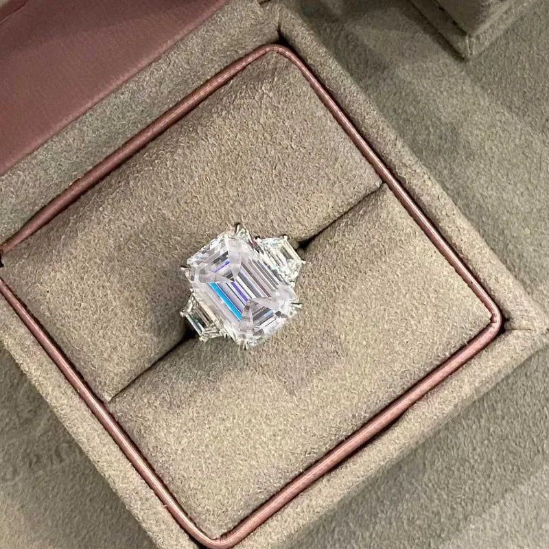 Bagues de luxe BXINY en argent 925 (S925) serties de trois diamants taille glace, sertis de moissanite taille radiant/émeraude 10 carats. Bijoux pour femmes et hommes.