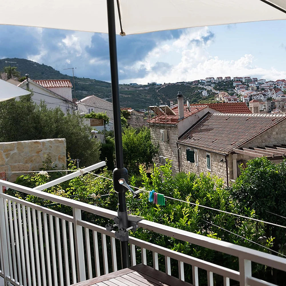Support de parasol compact pour balcon et jardin, doté d'une pince robuste pour un maintien sûr et une installation facile.