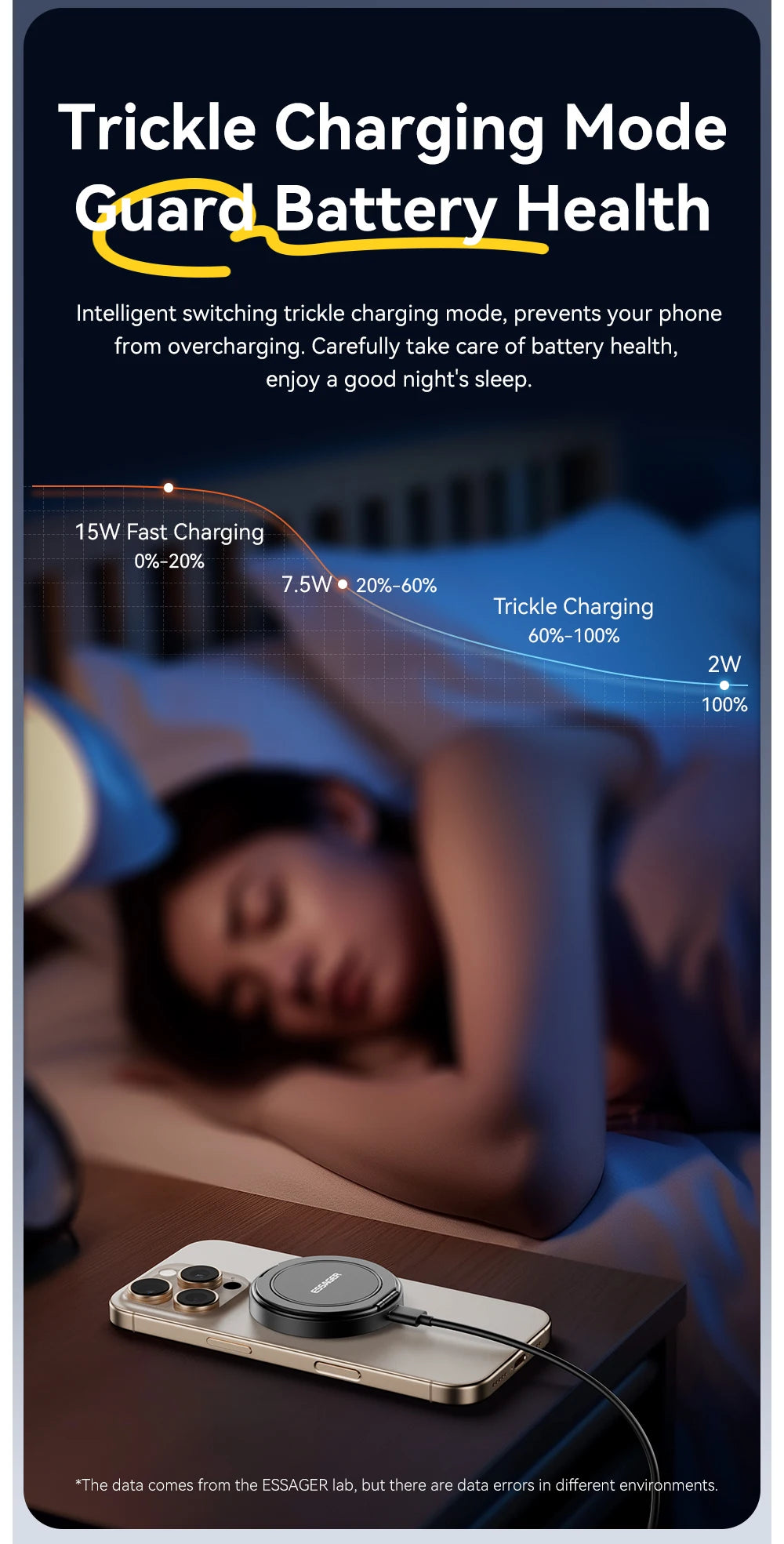 Essager Magnetic Wireless Charger With Holder 15W Fast Charging For iPhone16 15 14 13Pro Max Airpods Mini Wireless Phone Charger