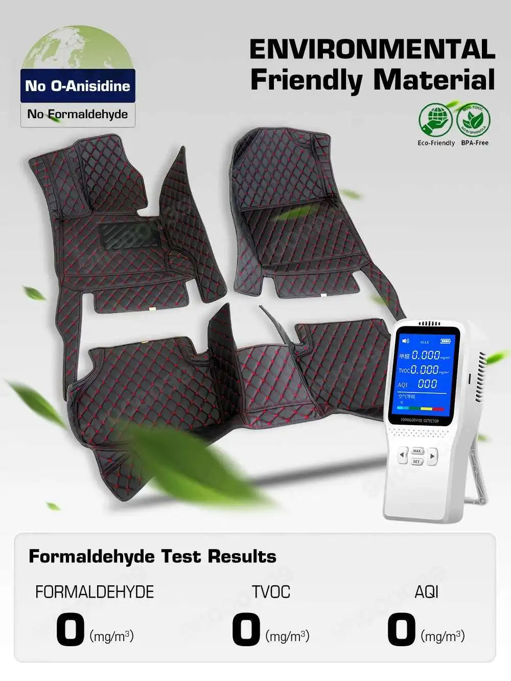It has a waterproof effect, so there is no need to worry about spilling drinks and food inside the car and making it difficult to clean. Just wipe with a damp cloth or rinse with water. Material of floor mat have undergone SGS testing and are free of formaldehyde and toxic