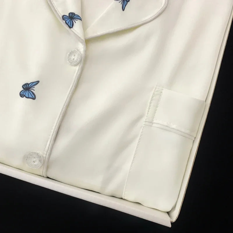 French Elegant Romantic Butterfly Print Women Pajamas Simple Ins Literary Aesthetics Sleepwear 2024 Fall Winter New Y2k Lounges