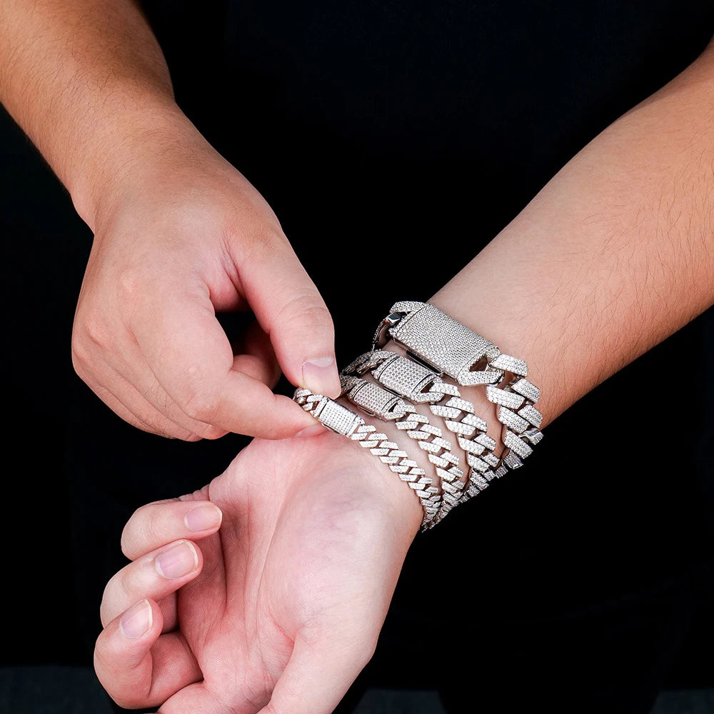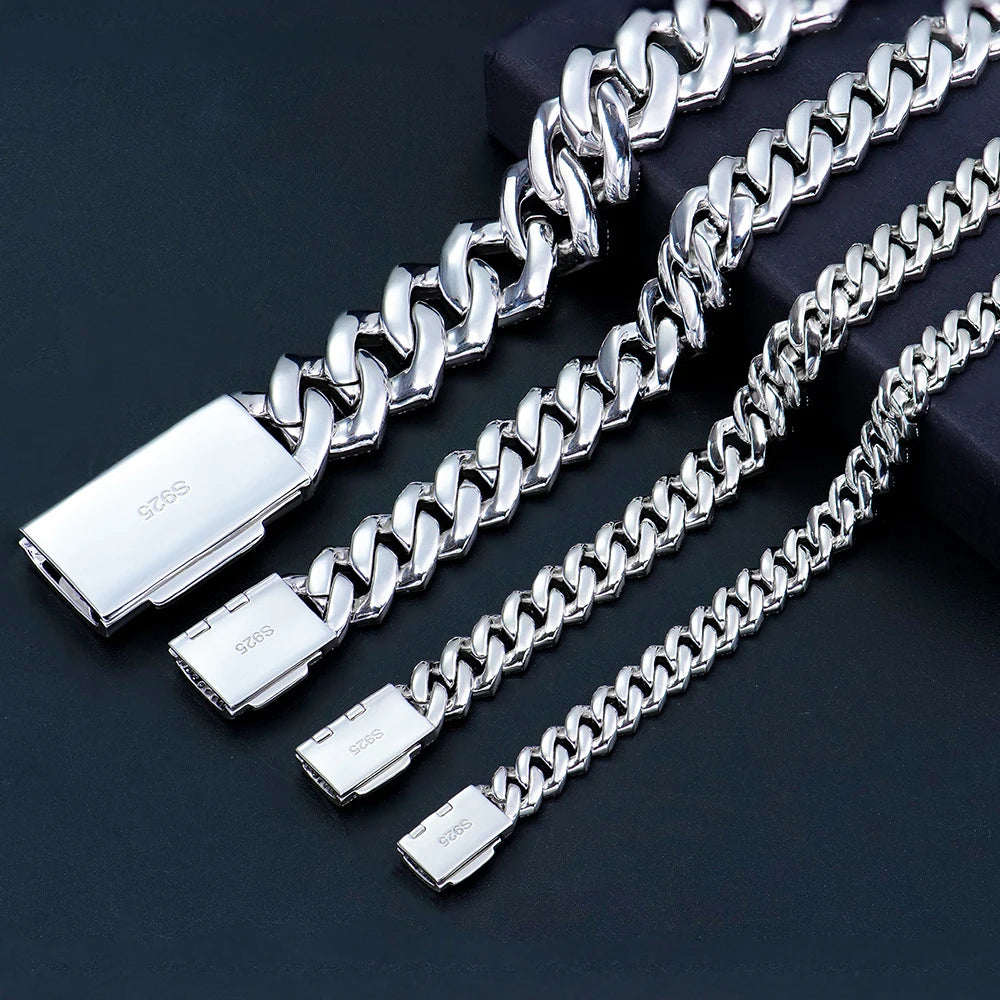 Bracelet cubain KNOBSPIN GRA certifié D VVS1 en moissanite, 8 mm/10 mm/12 mm/14 mm, en argent sterling s925, pour femme et homme.