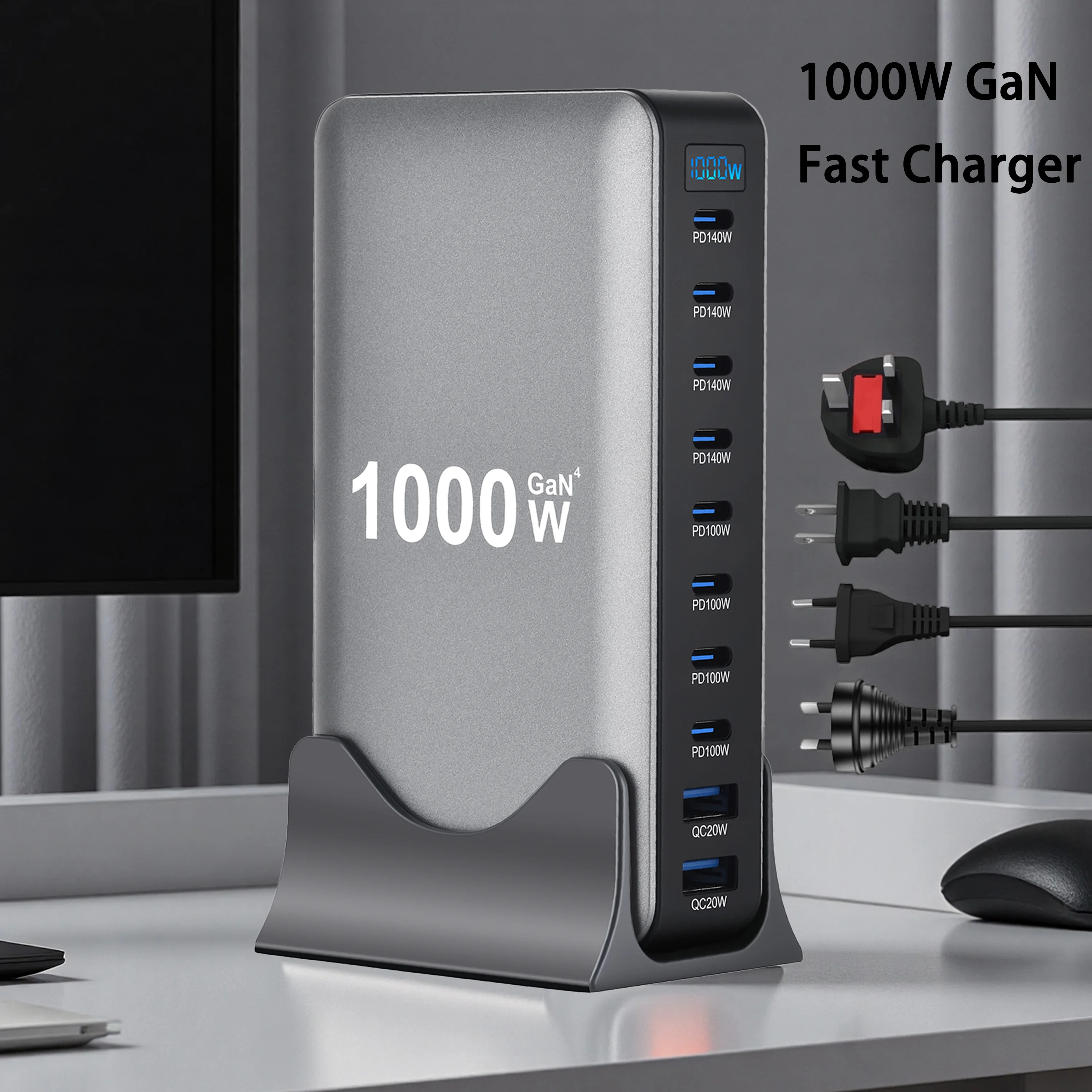 Nouveau chargeur rapide de bureau 10 ports GaN USB Type C PD3.1 PPS 1000 W pour tablettes et téléphones portables (dropshipping)