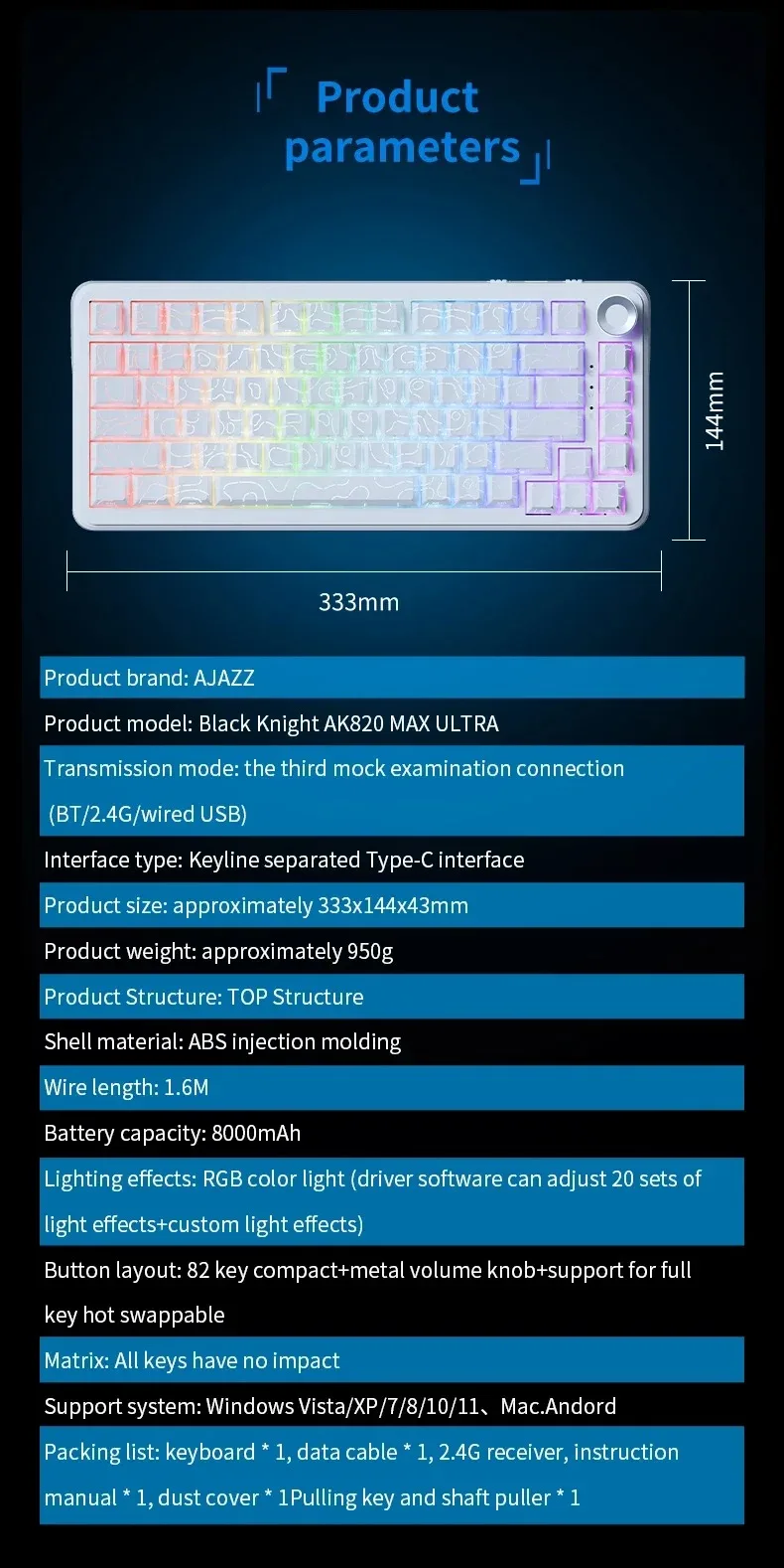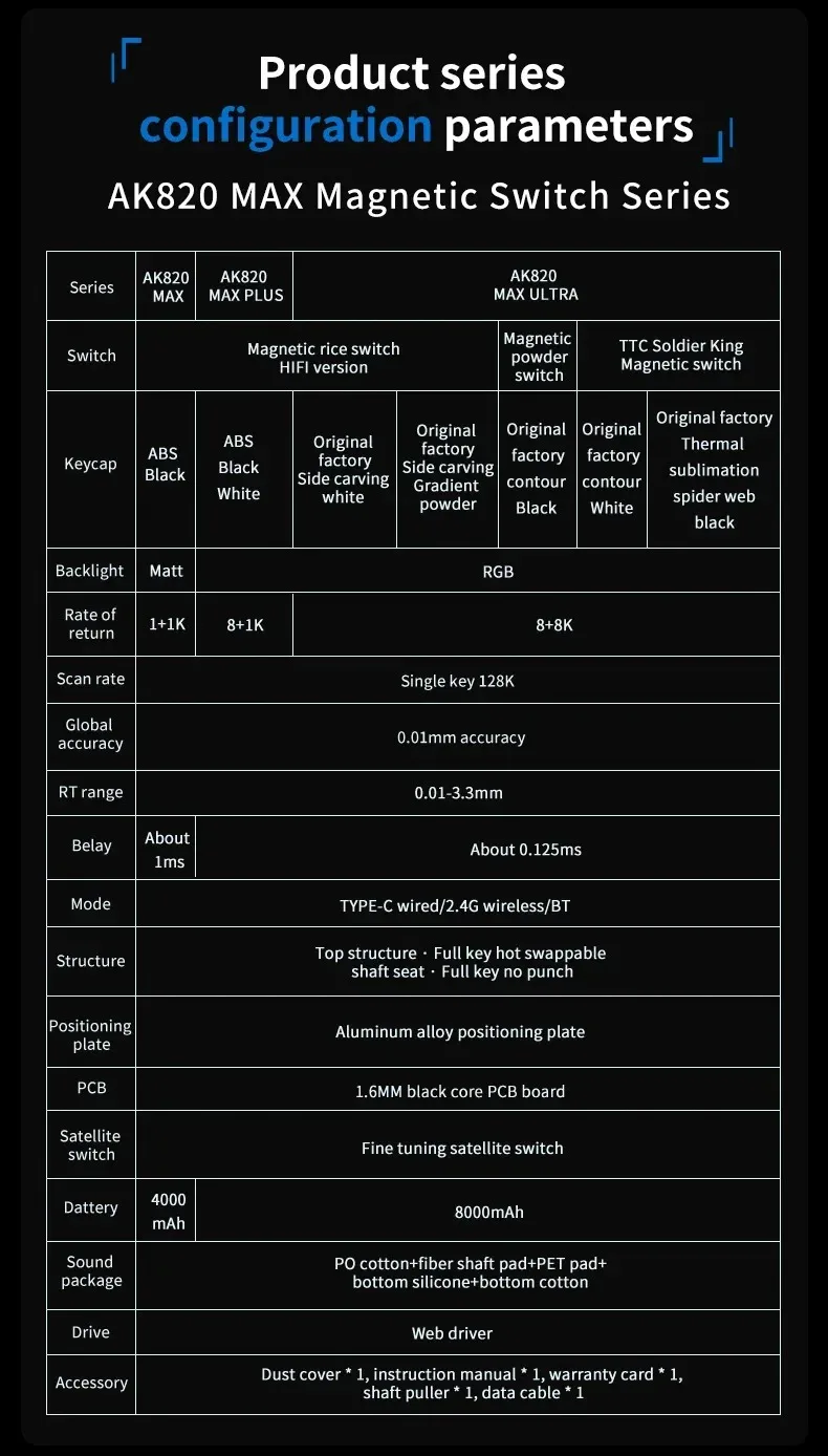 Sub - series: AK820 MAX, AK820 MAX PLUS, AK820 MAX ULTRA.
