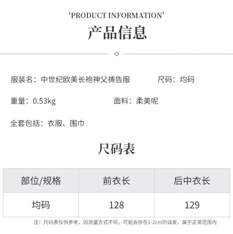 Robe de Cosplay du Prêtre Catholique, Robe de Messe de l'Église Chasuble, Vintage Baggy, Cape Médiévale