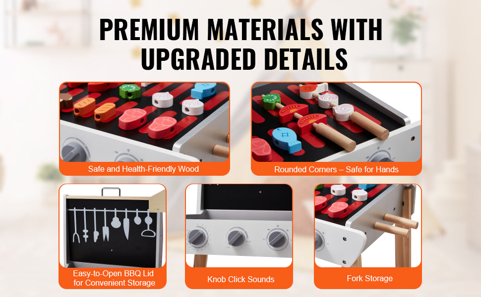 Fabriqué en bois de haute qualité, notre barbecue pour enfants est durable, lisse, sans bavures et sans BPA. C'est un choix sûr pour les enfants, conforme à toutes les normes de sécurité.