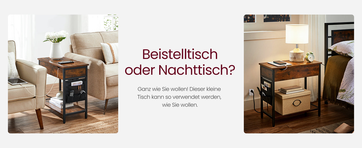VASAGLE side table (1-St) sockets and USB ports, folding tabletop